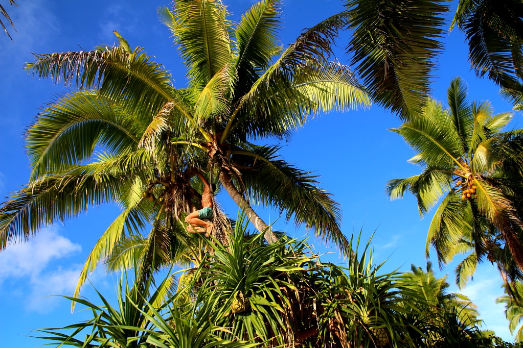 Jo viikon reissulle tarvittavan vesimäärän kantaminen on jo melko hankalaa, joten nesteytys on syytä hoitaa jostain muualta. Nestetarve näissä keleissä oli meillä noin kolme litraa naamaa kohti vuorokaudessa. Näillä saarilla juotavasta ei ollut pulaa, sillä saaret olivat täynnä kookospalmuja. Yhdestä kookospähkinästä saatiin vettä parista desistä reiluun puoleen litraan, joten jokunen niitä pitää päivän aikana puusta pudottaa ja auki veistää. Helpoiten avaaminen onnistuu pistämällä rajamoralla reikä kookoksen kylkeen. Meillä päin kaupassa myytävät kookospähkinät on jo valmiiksi kuorittu esiin paksusta kuitukerroksestaan. Itse pähkinä on siis ikäänkuin kookoshedelmän kivi. Puussa kookokset ovat tuoreena vihreitä, ja väri vaihtelee iän mukaan vihreästä keltaisen kautta ruskeaan. Maku vaihtelee kookoksen iän mukaan, ja parhaassa iässä olevissa kookoksissa neste on hieman hapokasta, hyvää, raikasta ja ravitsevaa.