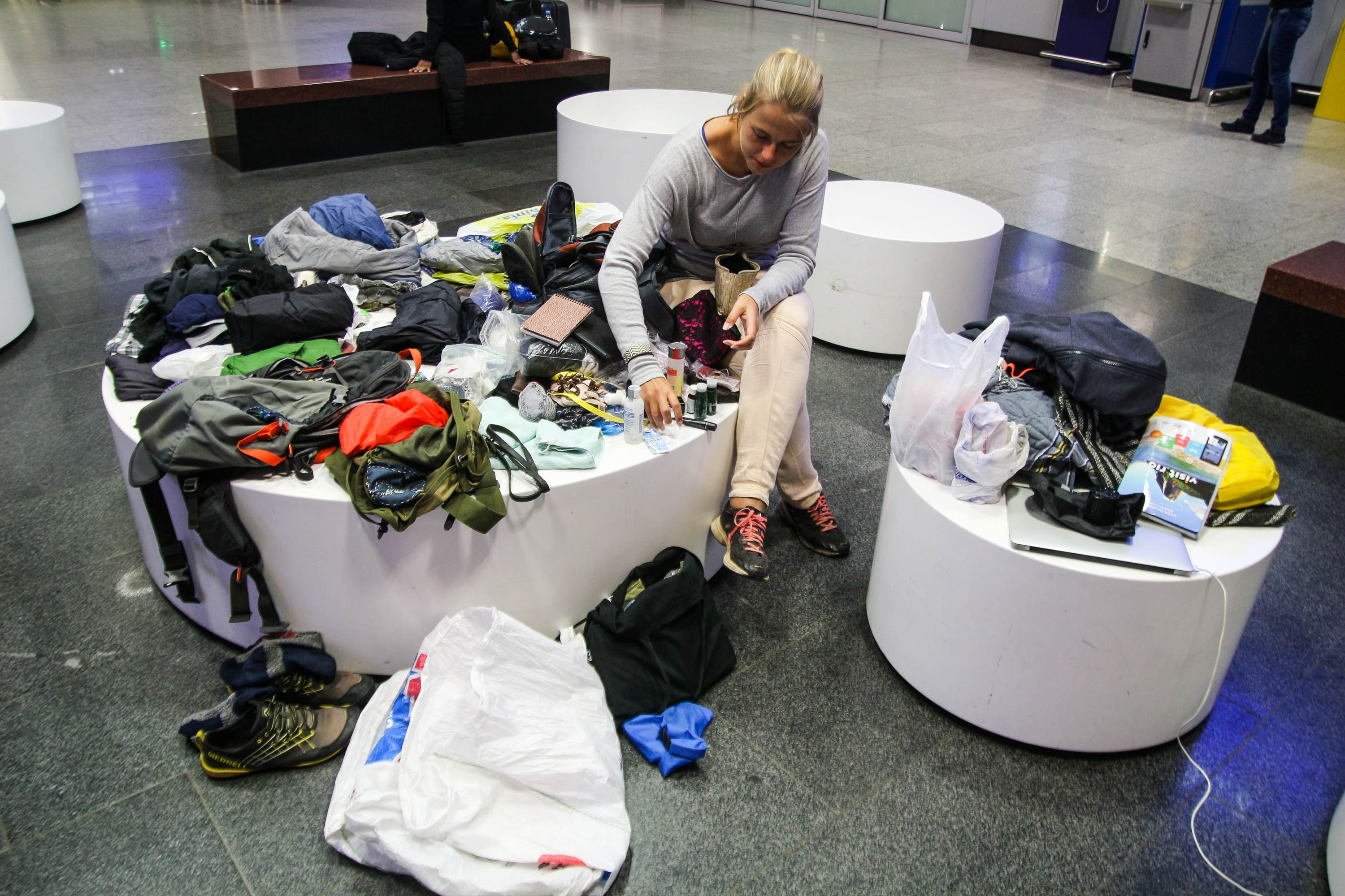 Kamat levällään Frankfurtin kentällä